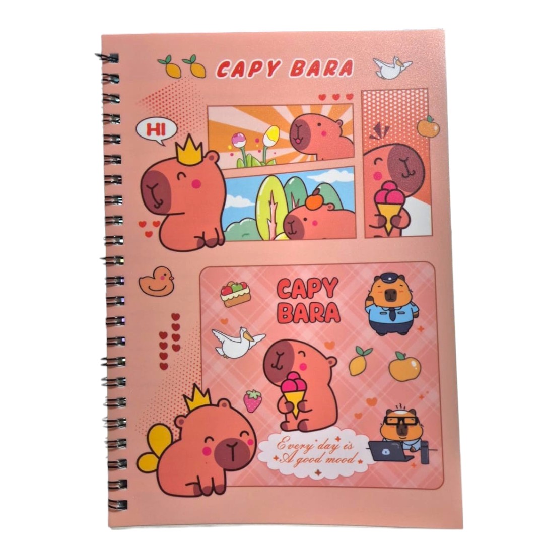 Caderno com estampa de capivara, ideal para anotações do dia a dia com praticidade e estilo. Possui capa em PVC estampado, que oferece maior resistência e durabilidade no uso diário.