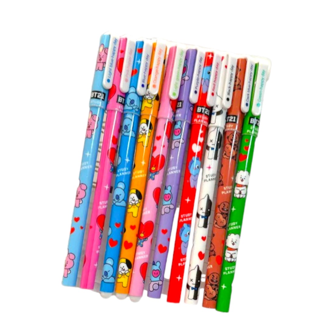 O kit de canetas gel BTS é perfeito para quem ama papelaria criativa com estilo. Com design inspirado no grupo, as canetas trazem cores vibrantes que deixam suas anotações muito mais bonitas, organizadas e cheias de personalidade no dia a dia.