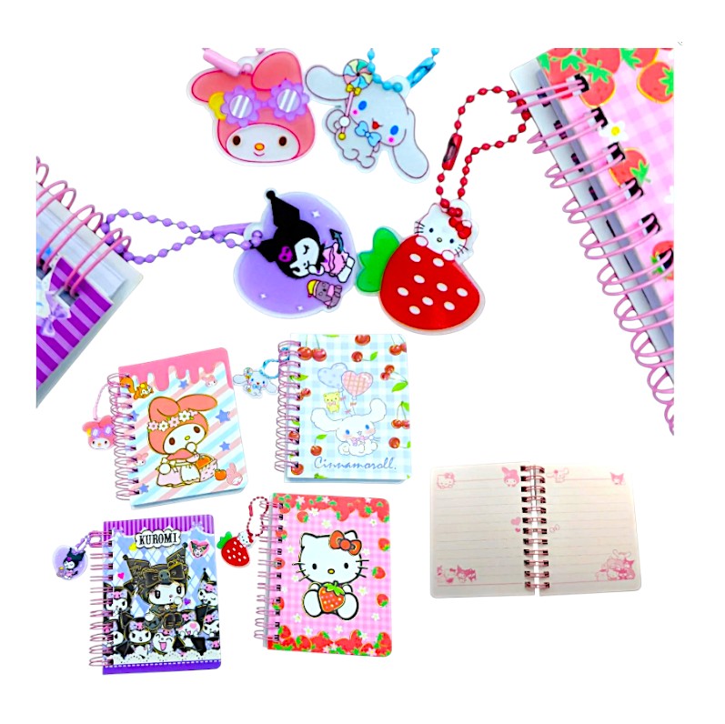 A Caderneta Sanrio Cartonada tem capa dura super charmosa, cheia de detalhes e um pingentinho tipo chaveiro que deixa tudo ainda mais especial.