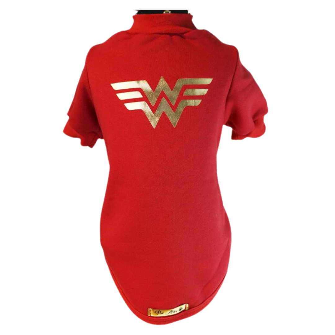 Inspirado na princesa das Amazonas, o moletom Mulher Maravilha traz toda a força, coragem e beleza dessa heroína lendária para o guarda-roupa do seu pet! ❤️💛