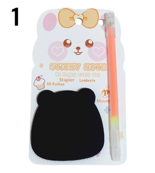 ✨ Post It Pet com Caneta Gel Fluorescente Colorida – Anote com estilo e muita fofura! ✨
